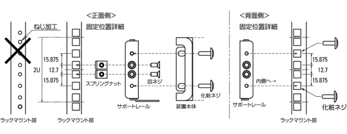 ラックサポートレール 型番:RM030は,ラックマウント部がねじ加工となっているラックには使用できません。